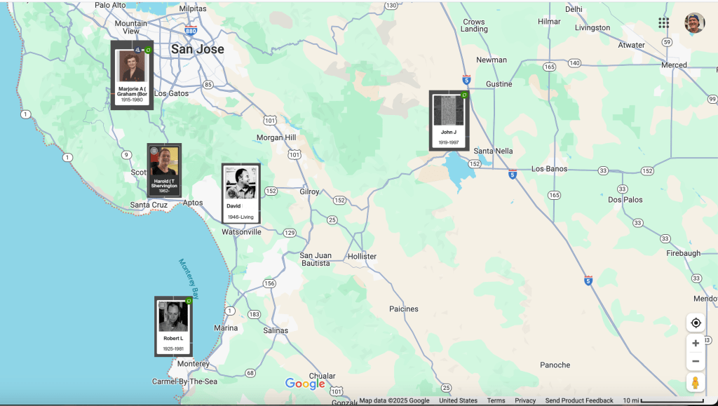 Even more surreal is the connection I share with Robert’s son, David—my half-first cousin once removed. We both served in the armed forces, pursued careers in law enforcement, and shared a passion for classic cars—restoring them, attending shows, and just enjoying the culture. David is a retired CHP officer, 16 years older than me, but our law enforcement careers actually overlapped in the late ’80s and ’90s. It’s strange to think we may have unknowingly crossed paths while both in uniform. Even off duty, the proximity is uncanny—I lived in Santa Cruz, just a short drive from David’s home in Watsonville. David’s son Robert lived less than two miles from me in Santa Cruz! I’m almost certain we walked the same streets, strolled the Santa Cruz Boardwalk, or admired the same cars at local shows along the Central Coast.