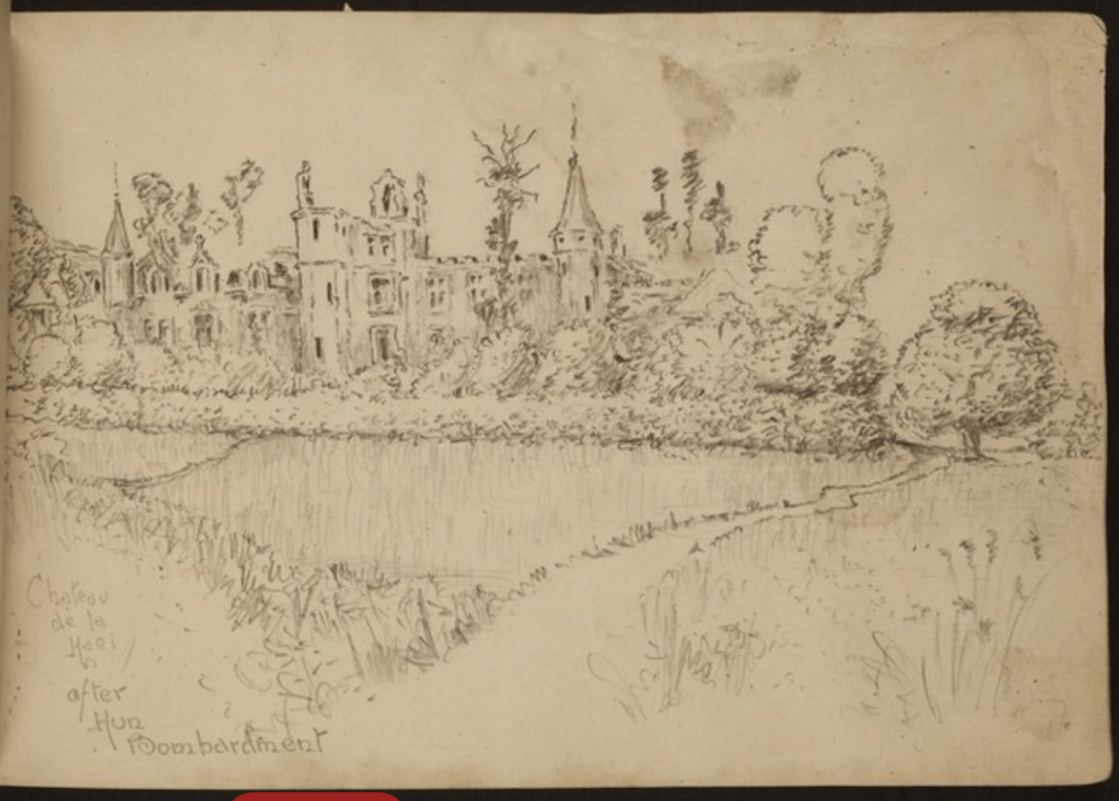 All front-line units receive orders to move forward, signaling the beginning of the Second Battle of Arras. Charles has now spent a full year in relentless combat, advancing from trench to trench and drawing ever closer to Belgium. As German forces retreat, they destroy infrastructure to hinder the Allied advance. Charles’s unit eventually takes shelter in the Château de la Haie, recently vacated and damaged by the withdrawing enemy.