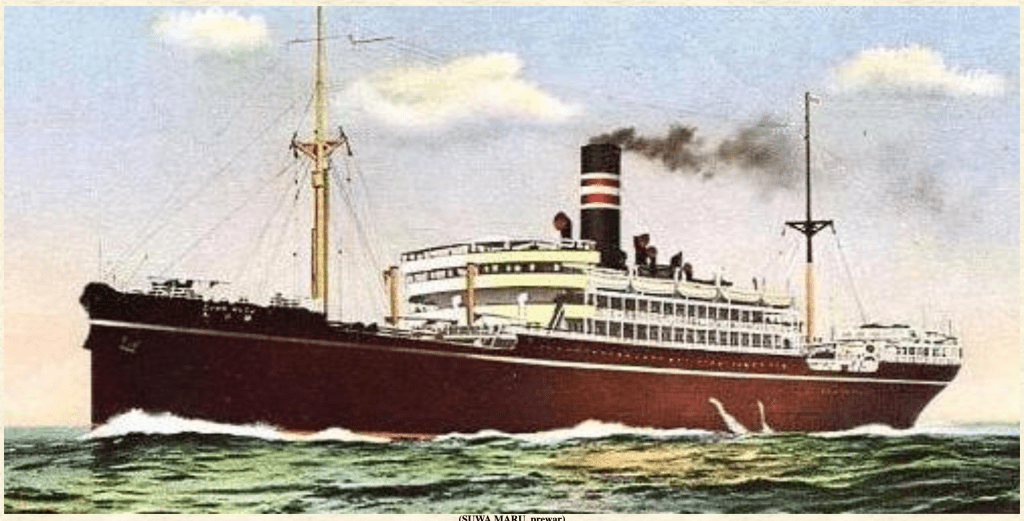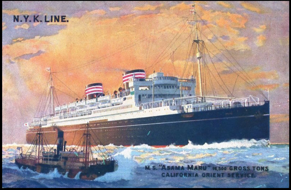 S.S. Asama Maru ca. 1930. Sunk in 1943 by the U.S.S. Atule while operating as a Japanese troop ship in the South China Sea.